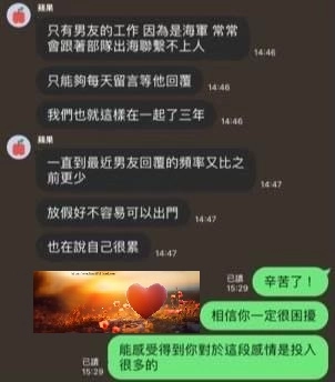 然而,命運的安排卻讓我們面臨了考驗。我的男友是一名海軍職業軍人,他的職責需要經常出海執勤,這意味著我們能夠相聚和聯絡的時間越來越少。漸漸地,思念成為了我們生活中的常態,每一次的久別重逢都彷彿隔世。