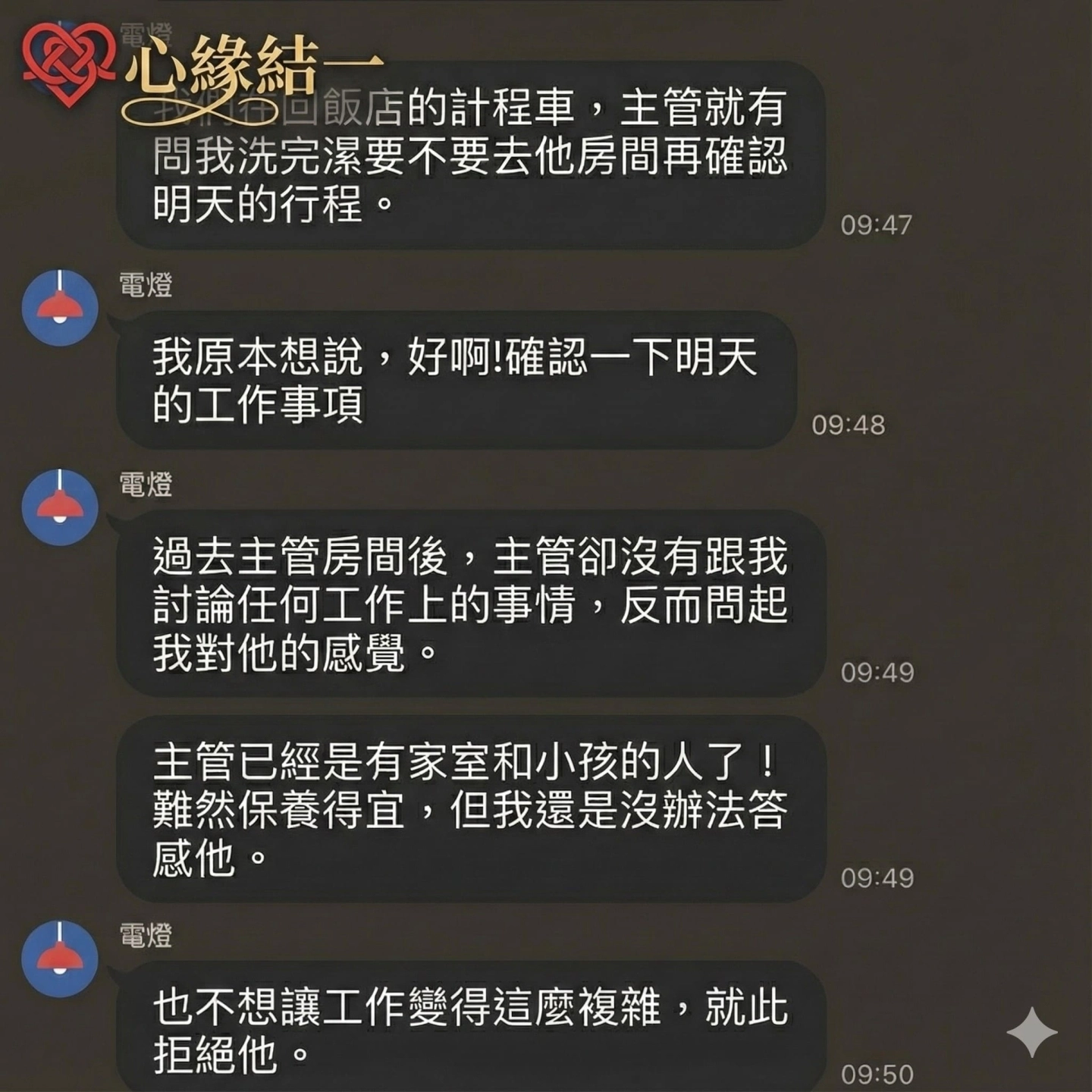 👇 [截圖 2.jpg (續):主管沒有討論公事,反而問起私人感情,小潔明確拒絕]
