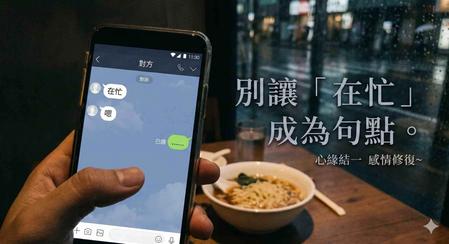 「你們的緣分紅線還沒斷,但是兩人的感情磁場被『距離』和『怨氣』嚴重干擾了。這不是他不愛妳,而是他的心『迷路』了,被負能量擋住了。讓我來幫你調整看看。」