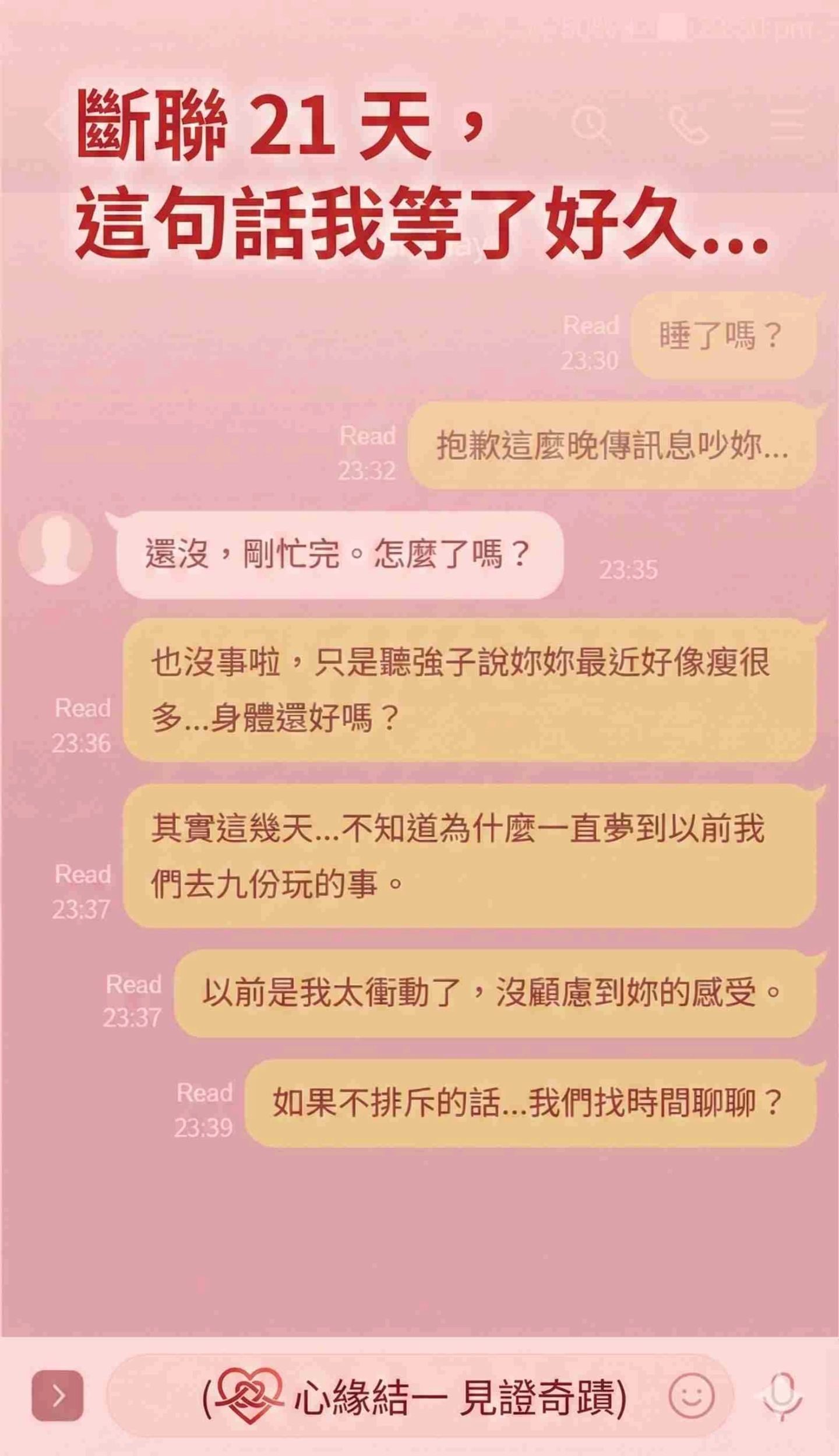 在網路上搜尋「挽回」、「復合」搜到快爛掉的時候,我看到了「心緣結一」。